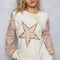 POL Exposed Seam Star Patch Thermal Top with Floral Sleeves