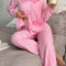 Stripe Buttoned Front Long Sleeve Top and Pants 2 Piece Sleepwear