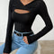 Twist Front Cutout Ribbed Long Sleeve T-Shirt